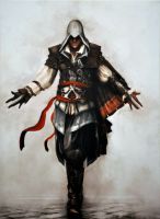 いわゆる「洋ゲー」の原画展です。ゲーム「アサシンクリード」の設定画の他、日本の様々なアーチストが、アサシンクリードをテーマにした絵を展示していました。